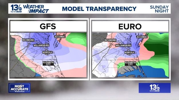 | "As the storm strengthens... colder air will attempt to work into the region late Sunday and Sunday night," according to 13News Now Meteorologist Tim Pandajis. "If that colder air arrives quickly enough, rain could change to snow."